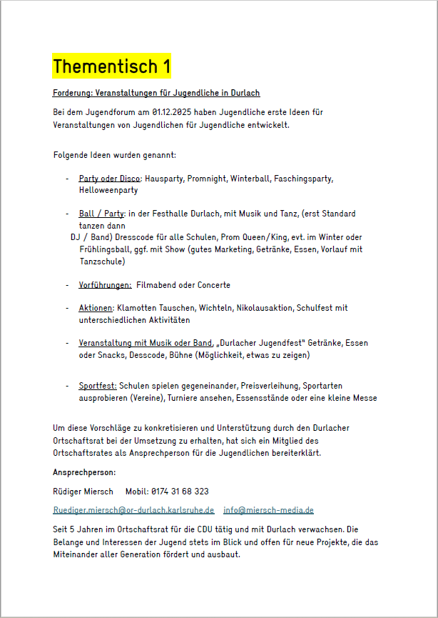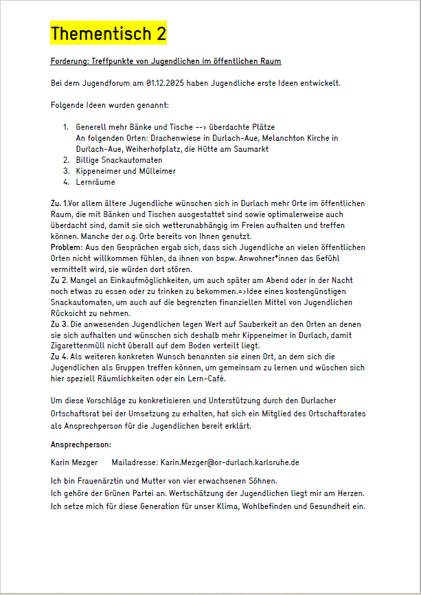 in Durlach? Wofür möchtet ihr euch einsetzen?