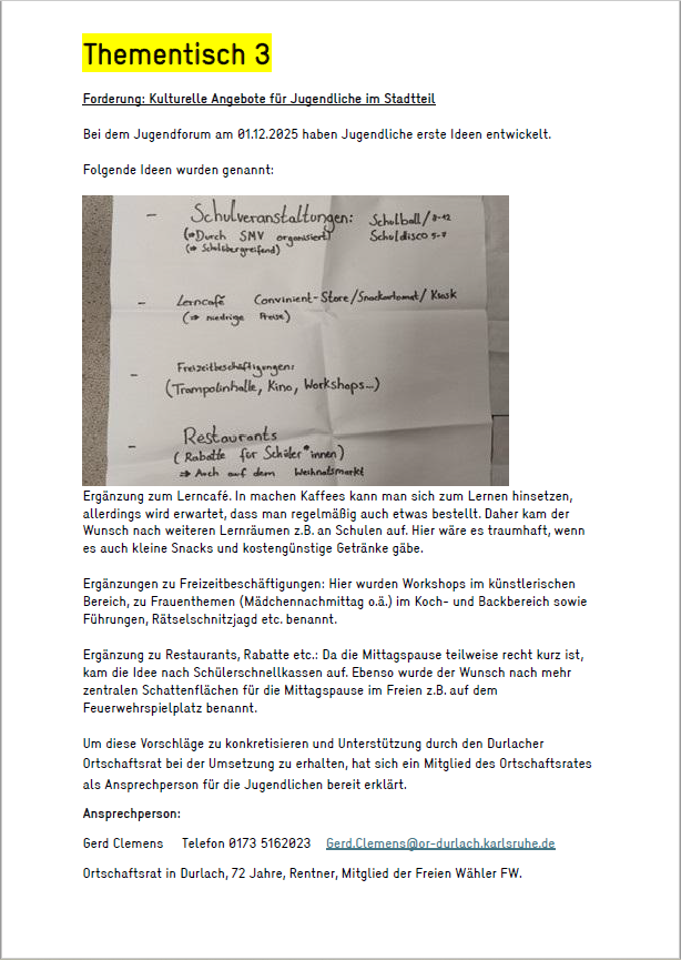 Themen wurden moderiert von Mitarbeiter*innen des Stadtamtes Durlach, Mitarbeiter*innen