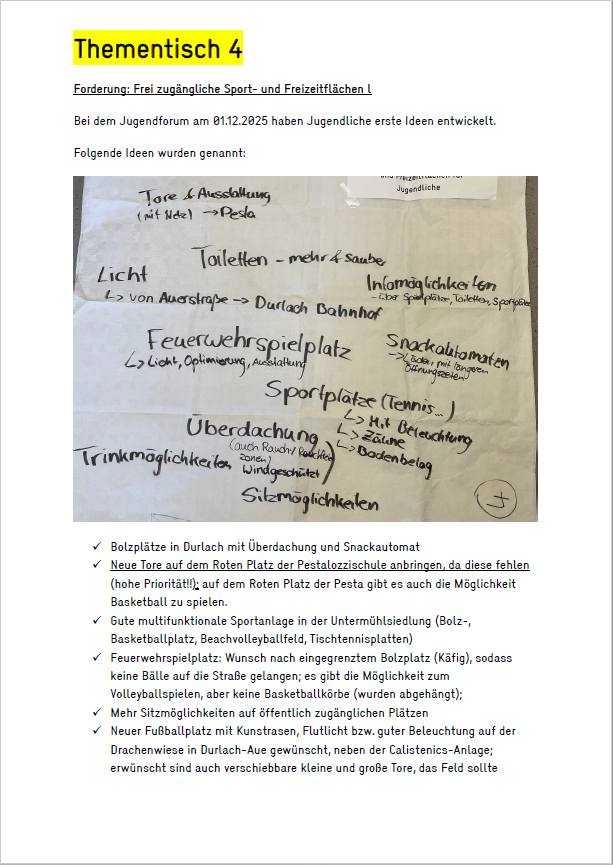 Unten sind die Absprachen, welche an den einzelnen Tischen getroffen worden, zu finden.